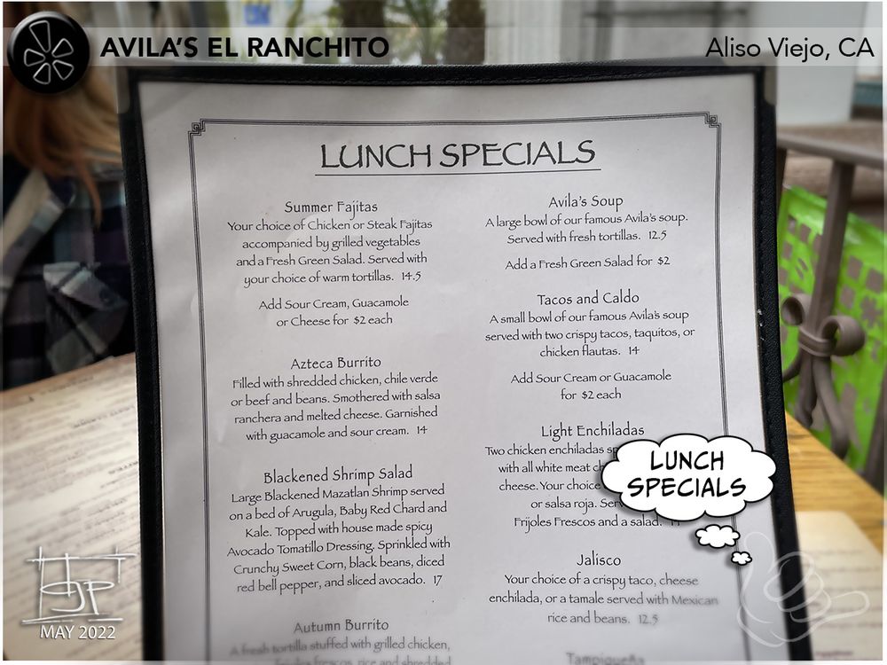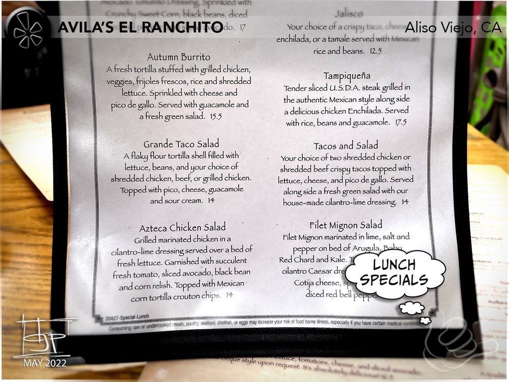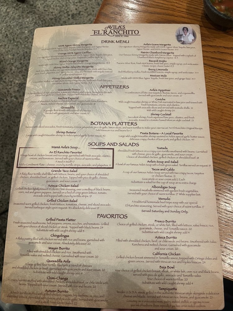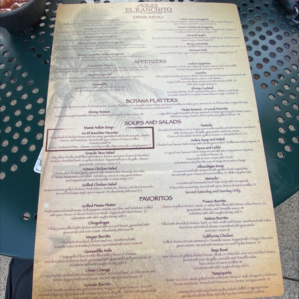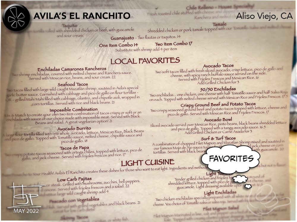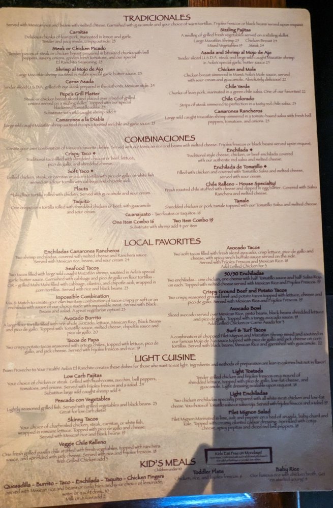 Avila's El Ranchito - Laguna Niguel Menu